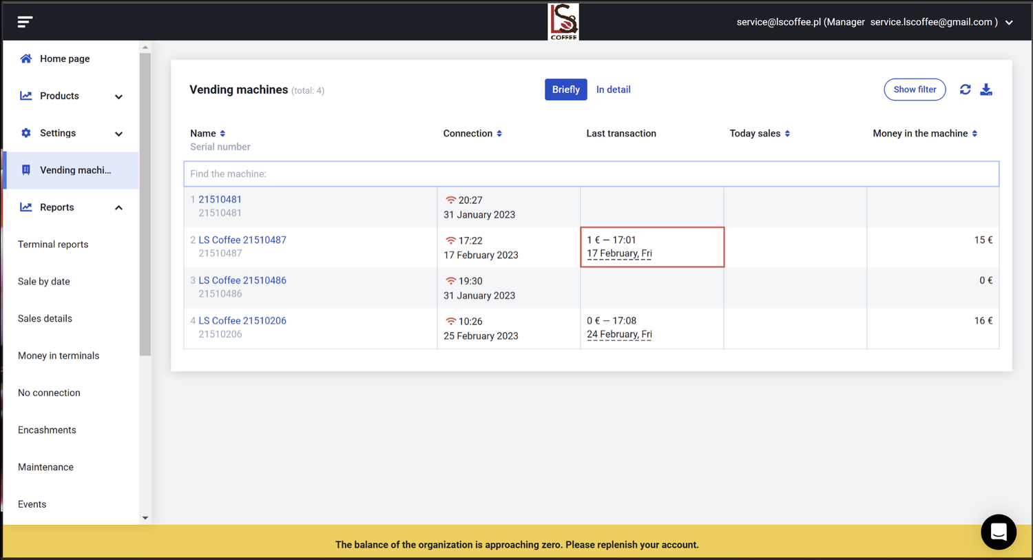 Zapobieganie sporządzaniu nieopłaconych napojów i nadmiernym wydatkom na składniki pozwala zaoszczędzić pieniądze, a zdalne monitorowanie pracy pomoże w porę wykryć błędy, takie jak wyczerpanie ziaren kawy, wody czy mleka.